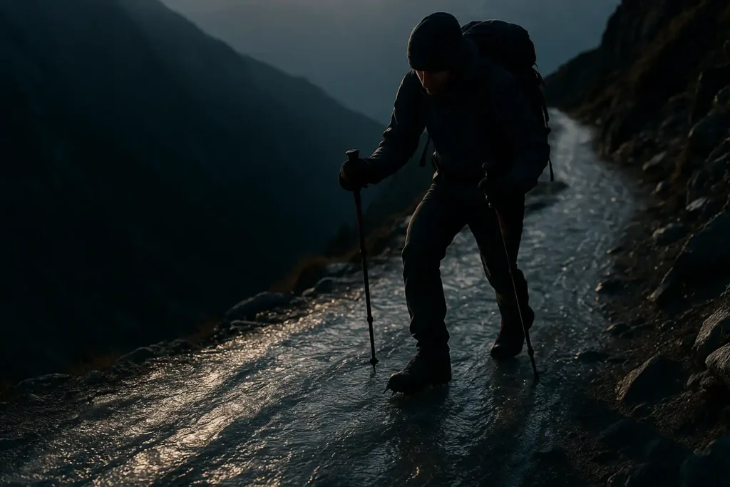 Le verglas, pellicule glace transparente recouvrant surfaces, constitue danger mortel sous-estimé systématiquement. Formation typique : pluie tombant sur sol gelé (<0°C), eau liquide se solidifiant instantanément au contact. Cette glace lisse, adhérence quasi-nulle, transforme sentiers anodins en patinoires mortelles. Les accidents verglas, chutes incontrôlées dévalant pentes, causent traumatismes graves disproportionnés par rapport banalité apparente conditions.